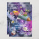 Se você está organizando uma festa de aniversário com tema de espaço sideral para a sua filha, esta ilustração de um simpático alienígena verde de desenho animado pilotando uma nave espacial de OVNIs através de uma galáxia azul, rosa e roxa repleta de estrelas, planetas e meteoros é o design ideal para o seu evento. Os modelos podem ser personalizados de acordo com as suas necessidades e a idade da aniversariante pode ser adicionada no verso do convite. Este design também é ideal para festas infantis com tema de alienígenas e galáxias.