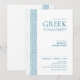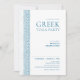 Convite Festa Toga em azul com elementos de pedra grega