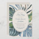 Convide seus convidados para o paraíso por um dia com este elegante design de folhas de palmeira tropicais. Com um spray de folhas tropicais variadas em tons serenos de azul e verde e um padrão de rattan estilizado no verso, este design incorpora um dia ventoso sob as palmeiras. Perfeito para sua festa casual de praia ou celebração de destino nos trópicos. Compre a coleção hoje para papelaria correspondente e vá para o dia perfeito!