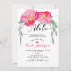 Convites de festa havaiana florais com videira de folhas verdes tropicais rosa. Personalize ambos os lados da maneira que desejar, para qualquer evento.