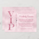 Este convite de festa personalizado apresenta um tema glamoroso e elegante em um fundo estilo folha rosa. O título VIP é impresso em um design de brilho rosa suave à esquerda. Uma faixa de diamantes rosa separa a área de texto. É perfeito para uma festa de aniversário, chá de noiva ou outra celebração fabulosa.