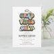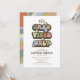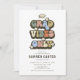 Comemore essa ocasião especial com um convite de festa de formatura retrô divertido e animado. O design exclusivo apresenta um título com tipografia vintage que diz 'VIBRAÇÕES DE FORMATURA APENAS', flores hippies margaridas, um chapéu de graduado e um modelo de texto fácil de personalizar.