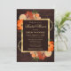 Este convite de chá de noiva rústico apresenta ricas flores de outono em tons de laranja queimado, pêssego e creme, dispostas sobre um fundo de madeira quente para um visual aconchegante e inspirado no outono. Os acentos em dourado adicionam um toque de elegância, enquanto a folhagem suave e as flores sazonais criam uma atmosfera acolhedora e festiva. Com sua paleta quente, texturas naturais e tipografia refinada, este design define o tom perfeito para um chá de noiva charmoso de outono, repleto de amor, alegria e beleza sazonal.