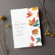 Este encantador design de convite temático de outono é adornado com folhas de outono pintadas à aguarela. As cores ricas e quentes e os detalhes requintados capturam a essência da estação, tornando-o uma escolha perfeita para uma variedade de ocasiões de outono.