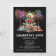 Uma vibrante, impressionante e deslumbrante cena noturna de uma tenda de carnaval que tem uma fotografia do mestre-anjo em um quadro redondo acima do quiosque de ingresso parece brilhar e brilhar contra um céu negro da meia-noite cheio de fogos de artifício coloridos e explodentes. Este design de aquarela luxuosa, elegante e de alto mercado é ideal para uma festa, carnaval ou comemoração circense, seja para aposentadoria, aniversário, função comercial ou uma festa de janto. Isso é adequado para adolescentes e adultos e os modelos de texto branco editáveis podem ser personalizados para se adequarem à sua ocasião especial.