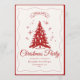 A charming, vintage-inspired design featuring a stylized red Christmas tree adorned with ornaments and candles, set against a crisp white background. The whimsical wavy border and "JOIN US FOR A" banner provide an elegant starting point for any holiday party, dinner, or event invitation.