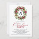 Festive Watercolor Christmas Holly Wreath Party Invitation.