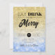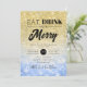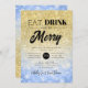 Festa de Natal / Festa de Natal / modelo de Convite de festas de inverno com design de tipografia "Comer, Beber e Ser Feliz", falso brilho e flocos de neve design no Dourado & Marinho. Excelente a ser usado para festas de janto Corporativo, bolas e galas de inverno, gravata negra / eventos e festas de escritório.