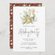 Cartão de convite personalizado Elegante do Feriado com uma pintura aquosa de decoração de Natal e champanhe, padrão correspondente no backer. Modelo de texto totalmente personalizável que permite personalizar este convite de Natal para corresponder ao seu evento: Festa de Natal, janta de Natal, Noite de Cocktail de Férias, casamento de Natal.