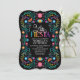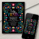 Mariachi, margaritas e memórias! Atirem a festa com este design de festa popular mexicano. O texto colorido e a trabalho de arte (desenhada à mão pela própria Lively Scribe) dão a esta design uma vibração peculiar, mas elegante. Perfeito para o latinx na sua vida. Ou uma festa que é convenientemente próxima de Cinco de Mayo ou Dia de los Muertos. Solicite seus convites impressos e suprimentos de festas ou faça o download de seus convites digitais agora por um dia que eles nunca esquecerão!