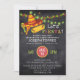 Tema mexicano divertido, convites para festas de formatura de fiesta- Lê 'Vamos Fiesta!' no topo em letras brilhantes e multicoloridas. Adorando o topo estão cordas de luzes de festa que parecem brilhar, incluindo pimentões picantes e luzes de cacto. À esquerda estão desenhos bonitos mostrando um chapéu sombrio, maracas, confetti e comida mexicana em cores semelhantes. Trendy, o 'chalkboard' rústico parece um fundo. Informações de festa de formatura personalizáveis, incluindo detalhes de RSVP, impressas abaixo. Basta preencher seus próprios detalhes do festival de graduação com o modelo de texto fácil de usar. A parte traseira tem fundo preto sólido, que pode ser mudado para qualquer cor. Estamos coordenando suprimentos de festas temáticas mexicanas no nosso compro Zazzle.com/angela65!