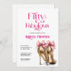 Convite Fifty and Fabulous Pink Gold Heels 50th Birthday
