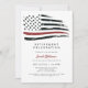 Este convite de festas de aposentadoria apresenta uma cor d'água angustiada bandeira vermelha fina e uma simples design neutra. Este convite é perfeito para comemorar seu bombeiro favorito.