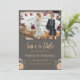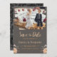 Convites geométricos estão se tornando cada vez mais populares. Crie o convite de casamento perfeito com este modelo cinza escuro e laranja e uma figurinha de casal romântico no bolo. Este design moderno e de alta qualidade é fácil de personalizar para combinar com as cores, padrões e tema do seu casamento.