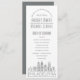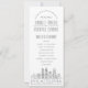 Um programa de casamento com temas do skyline deco para um casamento acontecendo na bela cidade de Filadélfia, Pensilvânia. Este cartão do programa de casamento apresenta uma ilustração estilizada do horizonte único da cidade com seu nome embaixo. Isto está descansando debaixo da informação do dia do casamento em um estilo aberto. No verso está uma cor de cinza de níquel macio com mais detalhes de casamento em texto branco para felicitar a frente. Uma na moda de maneira a dar boas-vindas a pessoas que saem da cidade, ao mesmo tempo que lhes dá informações úteis sobre a sua série de eventos de cerimônia de casamento.