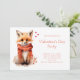 Um convite de festa do Dia dos Namorados com uma ilustração de um filhote de raposa laranja-avermelhado. Um sorriso sutil em seu rosto. Usando um lindo cachecol vermelho para se manter aquecido.