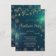 Um convite elegante para festas de férias, com flocos de neve dourados brilhando, e luzes de cordas em um fundo verde. Estes belos convites de Natal são perfeitos para convites de festas de janto de Natal, convites para troca de presentes de Natal, angariadores de fundos de Natal, convites para bolas de férias e outros eventos realizados durante o mês de dezembro. Use apenas os campos modelo para adicionar suas próprias informações de evento.