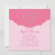 Um convite lindo em tons de rosa com um coração rendado. O design de envelope fictício tem corações minúsculos e sobrepõe um desenho abstrato e espiralado. (FP)