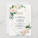 Design único e elegante para uma Festa de solteira. Apresenta flores cor-de-água, cor-de-rosa, cor-de-água creme, estrutura geométrica falsa de ouro, letra de ouro falsa moderna "HENS WEEKEND" e "DETAILS". Use a ferramenta Personalizar para adicionar informações. Mais ideias na minha coleção de Festas de solteira.
