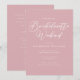 Este convite de fim de semana de despedida de solteira rosa-rosa, empoeirada, apresenta um roteiro branco clássico para uma noiva que vai ter um evento de 3 dias para o seu casamento. Celebre sua amiga com essa cor sólida feminina neste convite para festas de solteira minimalista e chique.