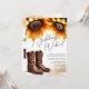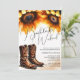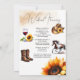 Aceite o encanto de uma festa de despedida de solteira russa no país com nossos convites itinerários de girassol, perfeitos para o final do verão e as celebrações do outono com a noiva. Estes últimos convites de rodeio ocidentais apresentam nefastos girassóis amarelados, botas marrons, chapéu de cowboy, cavalo, e um copo de beleza botânica que mistura vinho com um toque de charme rústico. É fornecido um espaço múltiplo para detalhes do evento. Emparelhe-os com o cartão RSVP de girassol correspondente do VGInvites e insira-os para uma aparência coesa. Experimente a qualidade em primeira mão encomendando uma amostra e sinta o papel refinado e a impressão. Visite www.zazzle.com/vginvites para explorar a nossa linha completa de artigos de casamento da VG Invites no Zazzle.