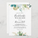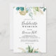 Este convite para o fim de semana de uma despedida de solteira tropical de ouro é perfeito para uma celebração de solteira de destino. A design apresenta predominantemente folhagem verde-aquosa pintada manualmente, associada a flores douradas.
