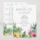 Este convite de itinerário de fim de semana de despedida de solteira com flores tropicais em aquarela pode ser personalizado com suas informações em tipografia chic. Criado por Thisisnotme©