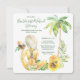 Convite de fim de semana de festa de despedida de solteira na praia com noiva morena de pele escura em maiô e cenário tropical. Itinerário de fim de semana de três dias no verso. Fim de semana de quatro dias também disponível. https://www.zazzle.com/blonde_bride_bachelorette_beach_weekend_invitation-256893928464890230