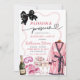 Convite de Fim de Semana de Despedida de Solteira de Pijama e Prosecco, Convite de Fim de Semana de Despedida de Solteira com Laço Preto Coquette, Convite de Festa de Pijama e Prosecco, Itinerário de Fim de Semana de Despedida de Solteira