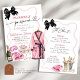 Convite de Fim de Semana de Despedida de Solteira de Pijamas e Prosecco, Convite de Fim de Semana de Despedida de Solteira com Laço Preto Coquette, Convite de Festa de Pijamas e Prosecco, Itinerário de Fim de Semana de Despedida de Solteira