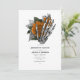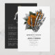 Convite de despedida de solteira gótico esquelético floral vintage caprichoso com itinerário em acentos de laranja personalizável para os detalhes do seu evento