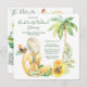Convite de fim de semana de despedida de solteira na praia com noiva morena de pele escura em maiô e cenário tropical. Itinerário de fim de semana de três dias no verso. Fim de semana de quatro dias também disponível. https://www.zazzle.com/blonde_bride_bachelorette_beach_weekend_invitation-256893928464890230
