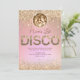 Um convite e itinerário divertido de fim de semana de despedida de solteira com tema retrô de discoteca. Por favor, note que os detalhes de brilho são simulados.