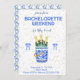 Convite para Fim de Semana de Despedida de Solteira Chinoiserie Grandmillennial. Brilho, bebidas e desenhos dourados.