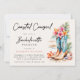 Crie um convite chic e moderno para um fim de semana de despedida de solteira em uma praia tropical que capture a essência de um tema de cowgirl costeira. Este convite elegante apresenta uma bela ilustração em aquarela de botas de cowgirl adornadas com conchas marinhas e flores tropicais exóticas. As palavras "Cowgirl Costeira" e "Despedida de Solteira" são exibidas de forma elegante em letras manuscritas modernas sobre um fundo arenoso brilhante. Na frente, você encontrará todos os detalhes importantes, como data, hora e local. Você pode personalizar ainda mais o verso com um cronograma detalhado dos eventos do fim de semana e informações sobre custos. Este convite combina perfeitamente o design moderno com um toque tropical divertido, tornando-o ideal para uma celebração de despedida de solteira memorável à beira-mar.
