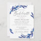 Um convite de fim de semana de Festa de solteira de roteiro elegante com elementos botânicos florais de marinho azul.