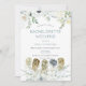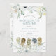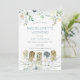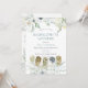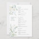 Lindos florais brancos e folhas de eucalipto decoram o topo e o fundo da frente e do lado esquerdo no verso. Uma ilustração da visão de trás de uma noiva e dos penteados de suas damas de honra está no fundo. A tipografia de ambos os lados é simples e elegante e facilmente personalizada para os detalhes de sua Festa de solteira. Seu itinerário de fim de semana está nas costas. Você pode alterar as cores de fundo em ambos os lados, se desejar, bem como o texto para uma cor diferente, se desejar, por meio da opção Clique para personalizar mais.