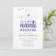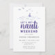 Um modelo de convite para fins de festa de solteira náutica moderno, elegante e chic, com impressão de tinta de uma cena de água, com ondas oceânicas, barco e gaivotas. Um design divertido, "vamos ganha nauti" para uma noiva moderna com modelos nas costas para todas as informações sobre o fim de semana divertido com as meninas. Uma escolha encantadora para um fim de semana de despedida de solteira de praia, um fim de semana de despedida de solteira costeira, um lago, um final de semana de despedida de solteira de beira-mar ou um fim de semana de despedida de solteira de barco ou iate.