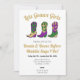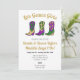 Este convite apresenta três botas brilhantemente roxas, douradas e verdes de vaqueira com a legenda "Vamos Geaux Girls", perfeita para uma viagem de meninas de Nova Orleans ou a festa de solteira temática Mardi Gras.
