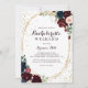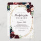 Este convite de fim de semana de despedida de solteira de ouro geométrico é perfeito para uma simples bachelorette. A design apresenta marinho de aquarela pintada à mão artística azul, burgundy, vermelha, rosas de pincel e peônias com folhas verdes elegantes, inspirando a colorida beleza do outono idílico.