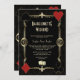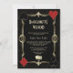 Elegante Casino Royale e design do cartão temático Art Deco 20s. Apresenta o estilo antigo de deco artístico, uma antiga estrutura de ouro falsa de Hollywood, de 1920, com dourado Fleur-de-lis, par de dados, trajes de jogo (simulando cartões de jogar), sobre fundo de decoração de Arte preta dourada. Use a ferramenta Personalizar para adicionar suas informações. Mais ideias na minha Coleção de Bachelorette Casino.