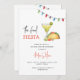 Watercolor Margarita e tacos "final Fiesta" diversão e convite colorido para o fim de semana da Bachelorette com evento no fundo.