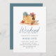 O convite para o fim de semana da praia Chic é perfeito para a solteira, viagens de meninas e muito mais! Summery design apresenta uma ilustração aquosa de uma bolsa de praia aninhada na areia, com óculos escuros, chinelos e conchas. Personalize com seus detalhes da casa da praia em uma mistura chic de serif clássica e tipografia sans moderna.