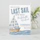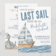Vamos ficar Nauti!! Um tema de despedida de solteira náutico fofo para um fim de semana de meninas com tema de vela, cruzeiro ou praia. Ótimo para uma despedida de solteira de destino para algum lugar como a Costa Leste ou Costa Oeste ou em qualquer lugar do mundo que você queira criar um clima náutico. Então pegue seus chapéus de capitão, prepare seus looks de navegação e fique 'nauti' com suas amigas para uma última vela antes do véu. Um barco a vela azul e branco fofo na frente navegando pelos mares, e detalhes de âncora, conchas e corda nas costas. Uma fonte tipográfica moderna manuscrita ou de caligrafia, essa impressão encantadora irradia charme e sofisticação. O itinerário está nas costas, mas sinta-se à vontade para alterar o texto para outros detalhes importantes ou apenas uma imagem fofa nas costas. Última Vela Antes do Véu Convite de Despedida de