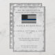 Convide seus convidados para a festa de formatura com estilo usando este convite com a bandeira da polícia de fina linha azul. Este design apresenta um fundo de cinza prateado com uma bandeira da polícia de fina linha azul e os detalhes da sua festa em tipografia cinza separados por estrelas brancas. O verso do cartão tem um padrão de estrelas brancas em prata falsa. Desenhado pelo renomado artista ©Tim Coffey.