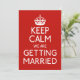 Mantenha-nos Calmos - Convites de casamento com um toque de humor... fundo vermelho com texto branco e uma coroa no mesmo estilo que manter calma e carregar na design... anúncios de casamento personalizáveis de Ricaso