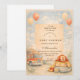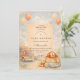 Celebrate a little hero on the way with this cute firefighter baby shower design, illustrated in a warm, storybook style. Featuring classic firefighter details like a helmet, jacket, boots, and fire truck accents, the artwork feels sweet, cozy, and timeless rather than loud or cartoonish.