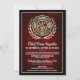 Classic gold Maltese cross design on a rich red & gold accented background for these custom, personalized text firefighter retirement party invitations.