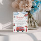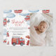 Adorable firetruck-themed photo thank you card featuring watercolor fire engines, firefighter gear, clouds, and rescue helicopter illustrations. Includes space for a personalized message and a photo of your little one. Perfect for firefighter or fire station–themed first birthdays and kids’ parties. Great for printable or digital use and fully customizable.