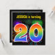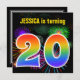 Este design de convite de aniversário vibrante e divertido apresenta um padrão inspirado em fogos de artifício celebratórios coloridos, junto com o número "20", tendo um espectro multicolorido como o arco-íris ou padrão de gradiente. O nome na frente pode ser personalizado. A parte traseira contém informações personalizadas sobre a parte. Convites de festas de aniversários como este podem ser enviados a potenciais participantes para uma festa de aniversário que se realiza para celebrar o vigésimo aniversário de alguém. [~Z0000337]